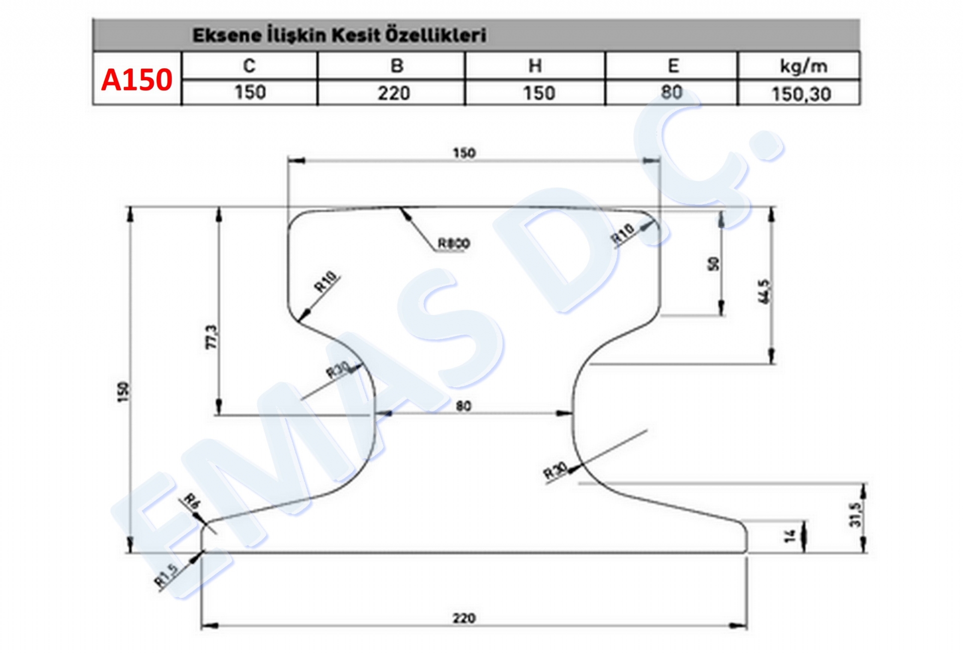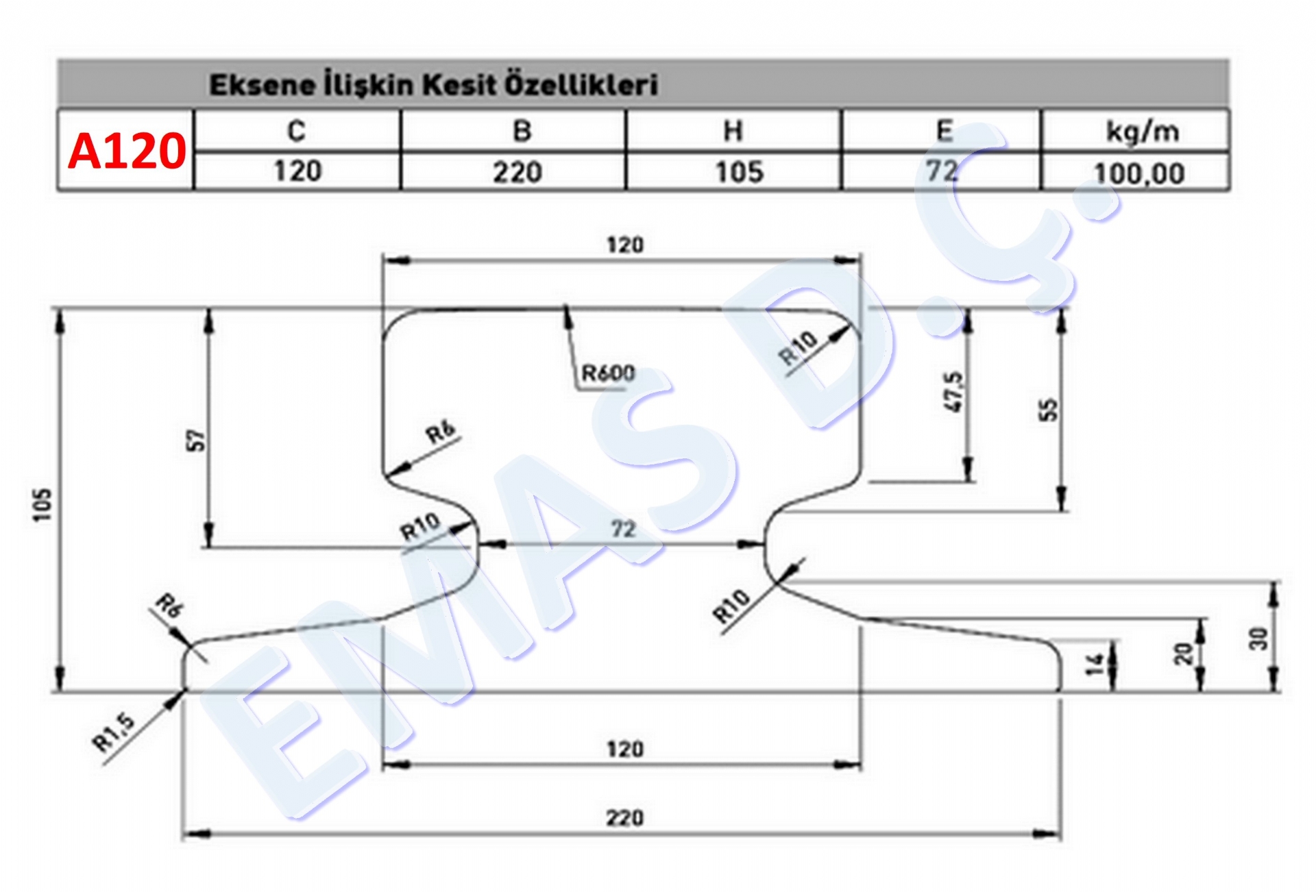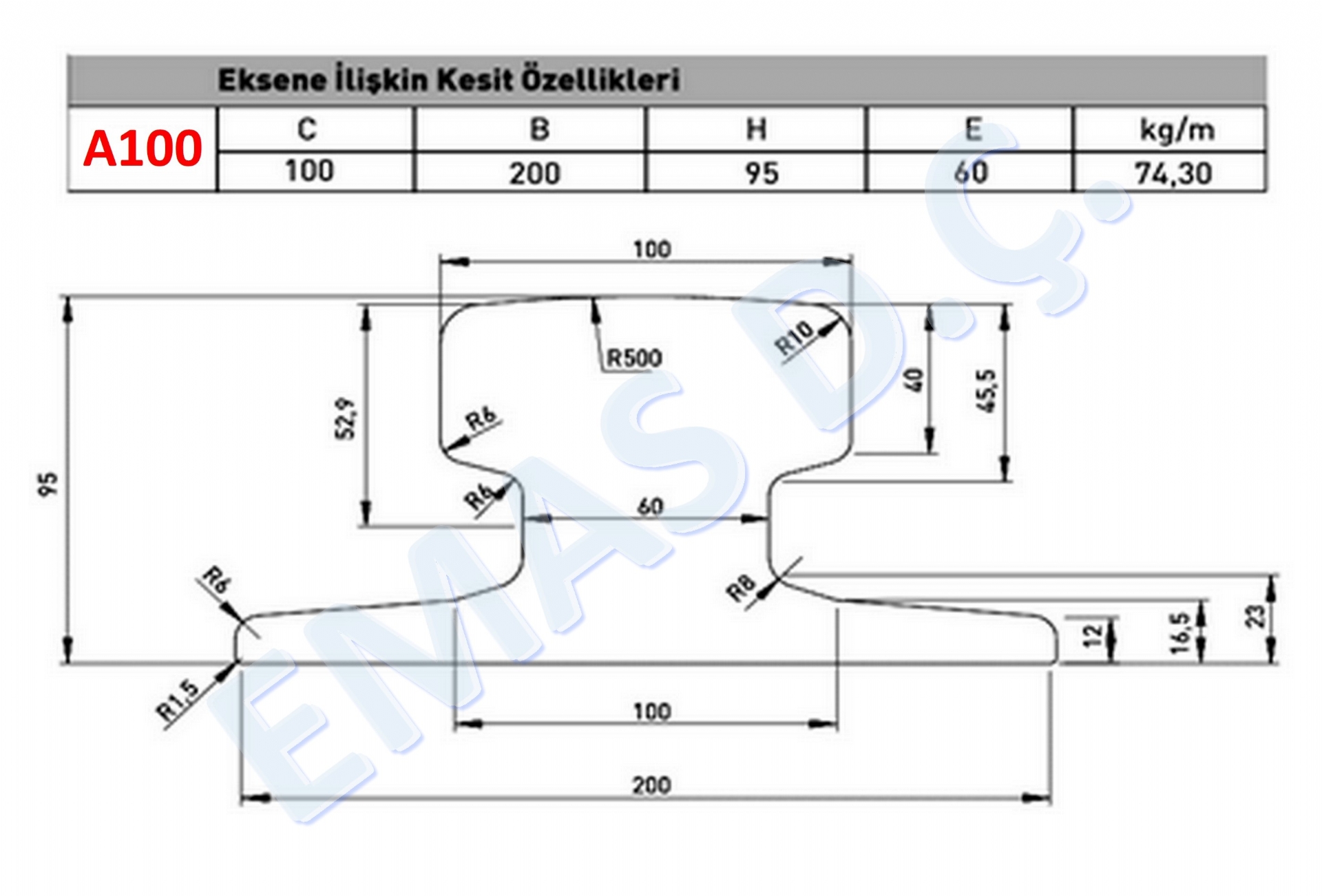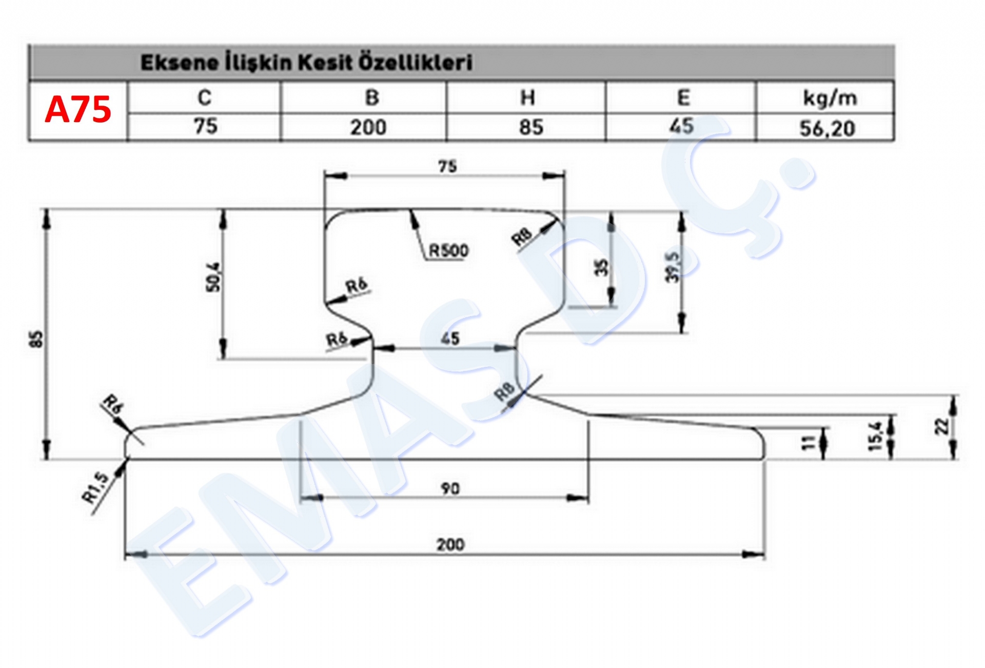 A SERİSİ AVRUPA NORMLU VİNÇ RAYLARI