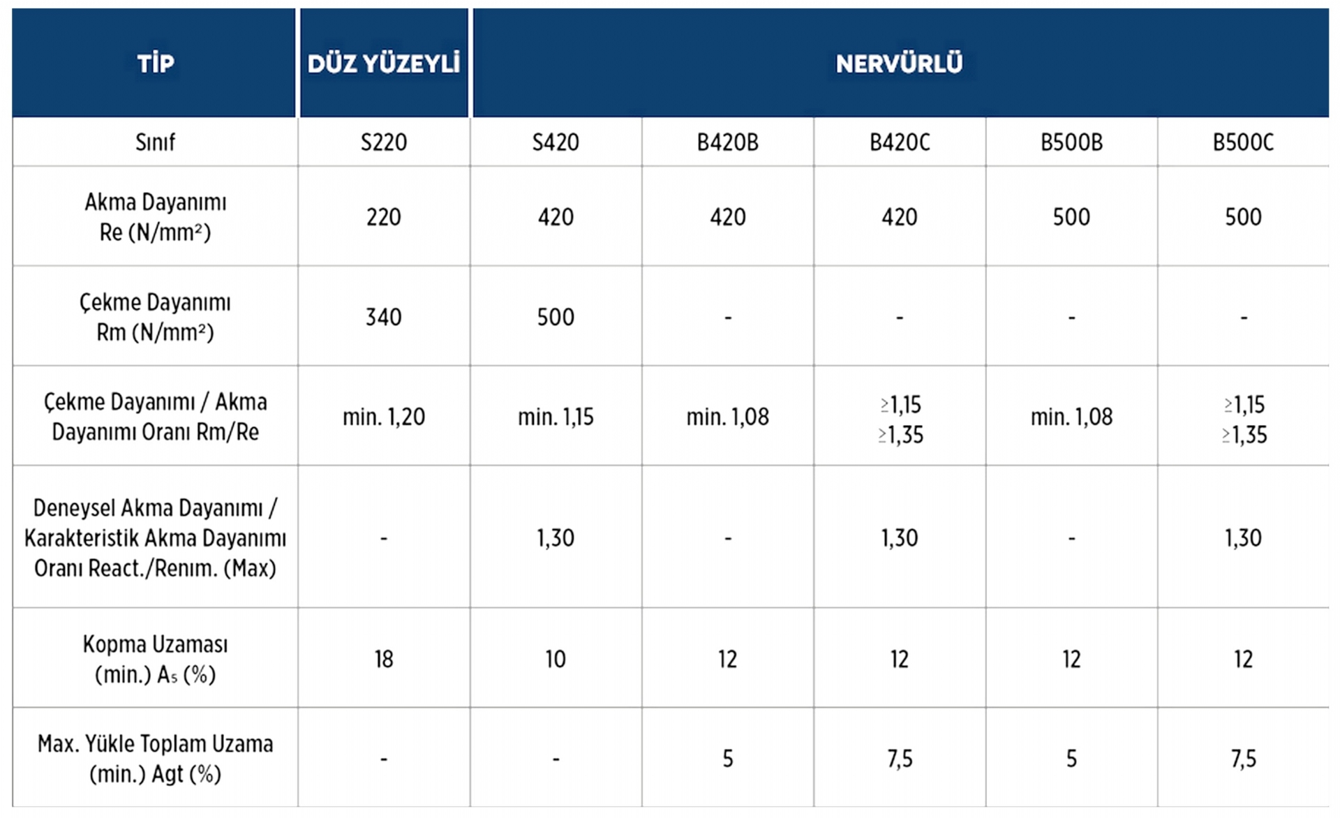 NERVÜRLÜ İNŞAAT DEMİRİ ANALİZ DEĞERLERİ