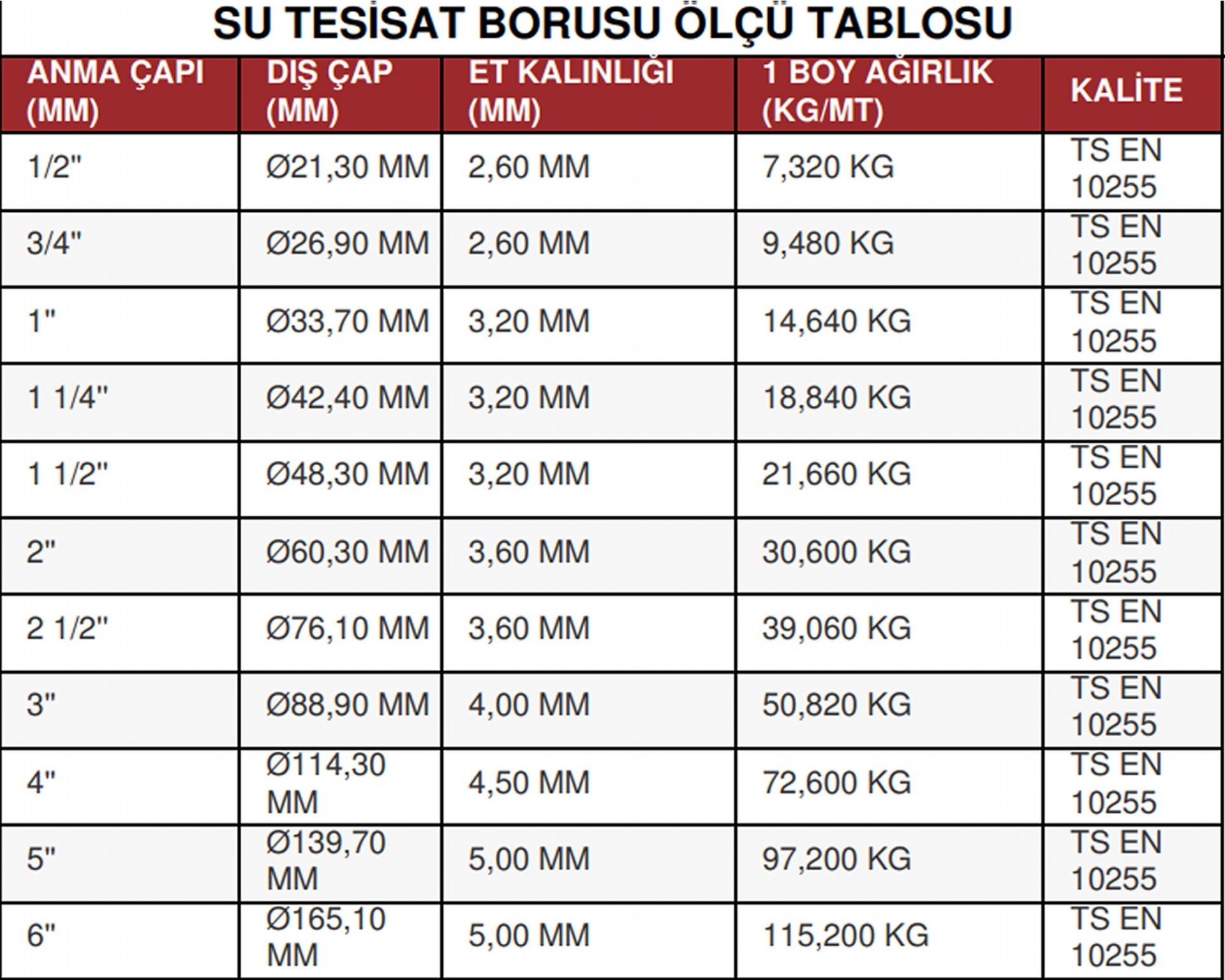 *Su tesisat borularımız standart olarak 6 m. uzunluğunda üretilmektedir. 3,00 m. altı su tesisat borusu talepleriniz için lütfen bize ulaşın.