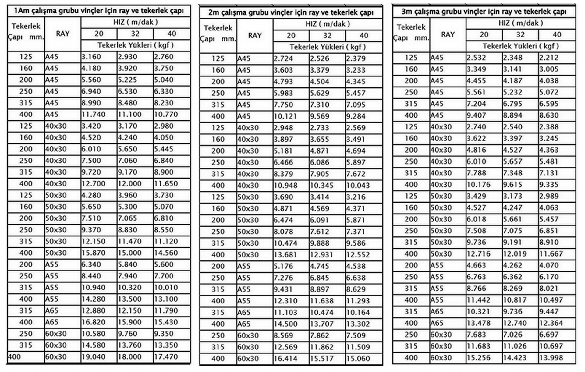 Vinç tekerlek yükleri hesaplaması genelde üretici firma tarafından verilir. Bilinmeyen durumlarda bu yük